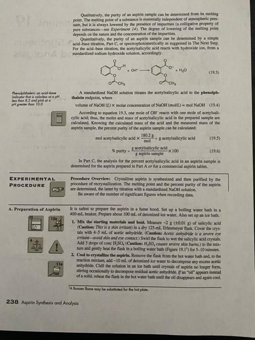 Experiment 19 Report Sheet Aspirin Synthesis And Chegg 121314 cooled to freeze In this experiment you will measure the melting point of your synthesized ASA product salicylic acid a crushed aspirin tablet and pure ASA from a manufacturer.